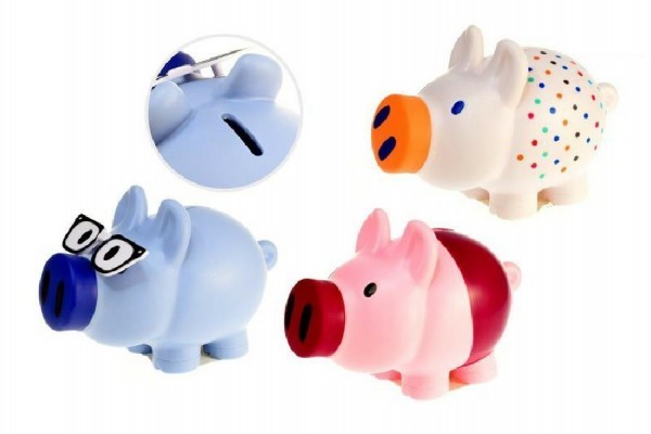 Pokladnička prasátko plast 20cm asst 3 druhy v sáčku
