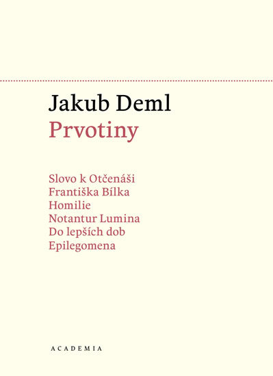 První svazek obsahuje čtyři knihy Demlových raných textů - z doby, kdy byl na jedné straně uchvácen literárním světem Otokara Březiny a výtvarným světem Františka Bílka, a na druhé straně vypjatým katolickým apokalyptismem Josefa Floriana: Slovo k Otčenáši Františka Bílka - cyklus meditací k...