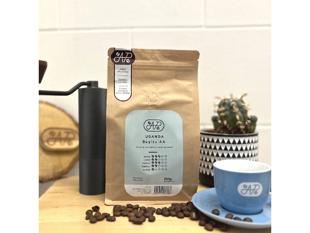 Země původu: UgandaRegion: Kapchorwa, Eastern UgandaNadmořská výška: 1.900 - 2.100 m n.m.Zpracování: Prané/mokréOdrůda: Variace odrůdProducent: Variace farmářů z regionuStupeň pražení: Full city +