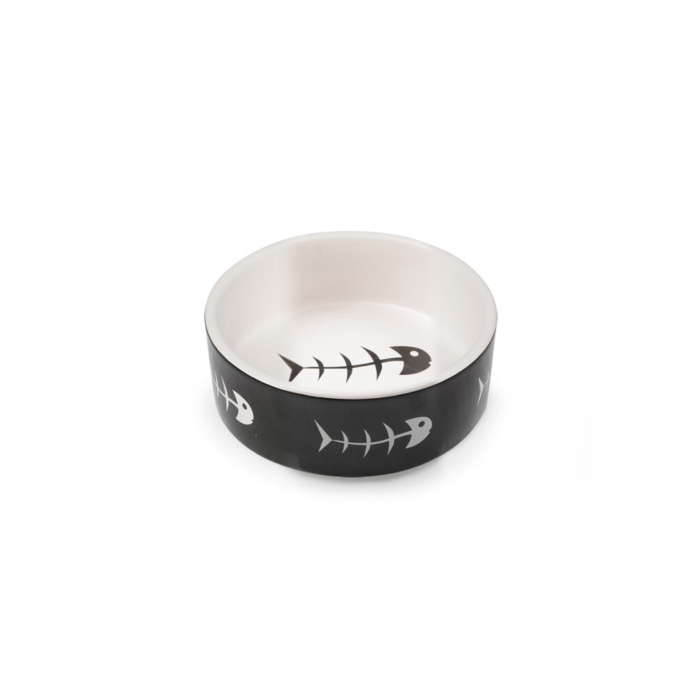 Keramická miska pro kočky černo/bílá, rybí kostra