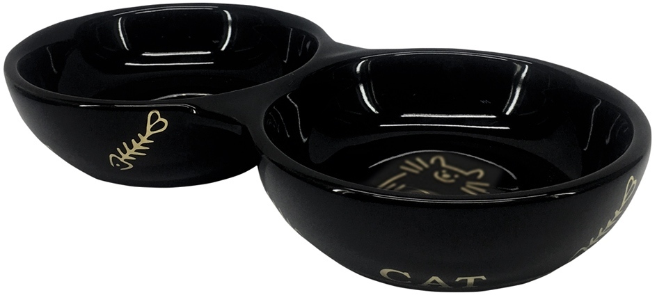 Nobby GOLDEN CAT keramická dvojitá miska pro kočky černá se zlatým vzorem 22x4cm/2x0,13l