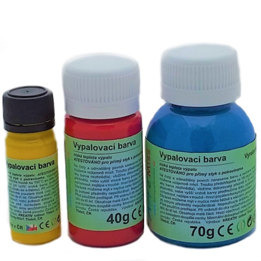 Troubu předehřejeme na 150 stupňů (teplotu pečlivě nastavíme, aby barva nezhnědla), vložíme dekorovaný předmět a 30 minut vypalujeme. U větších předmětů, nebo vyšší vrstvě barvy prodloužíme dobu vypalování cca o třetinu. Necháme zchladnout, nejlépe v troubě - hrozí popálení horkým předmětem.