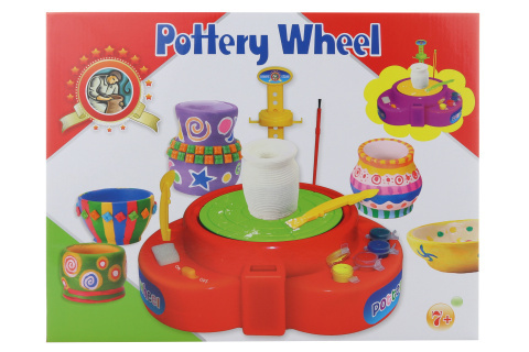Hrnčířský kruh na baterie. Napájení na 3 AA baterie (nejsou součástí). Balení obsahuje hrnčířský kruh, barvy, štětce a modelovací hmotu. Věk 7+ číst celé