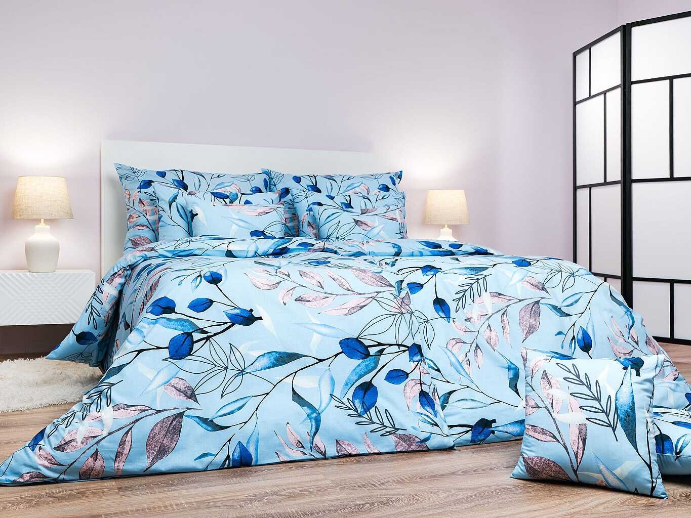 Luxusní ložní prádlo Milaya modrá s moderním přírodním motivem v modrých a pudrových tónech na světle modrém podkladu přináší do ložnice eleganci a svěžest. Nejlépe vynikne v kombinaci s prostěradlem v barvě královsky modré, denim, banán, bílé, béžové nebo tmavě šedé. Vyrobeno v České republice firmou DADKA VRACOV.