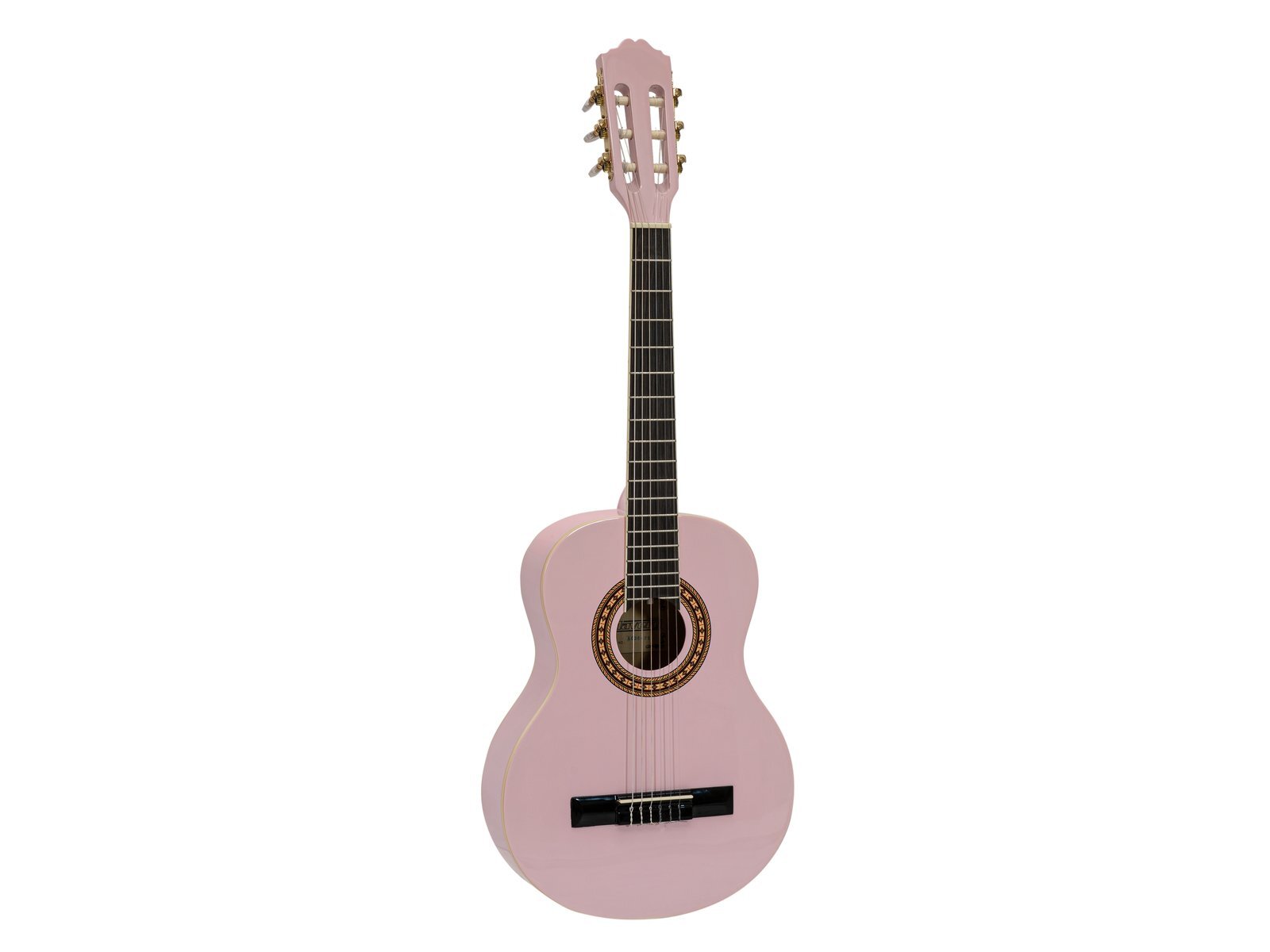 Klasická kytara z lipového dřeva, velikost 3/4, růžová barva.Krk: GabonHmatník: Blackwood Tělo: 3/4 Lipové dřevoDélka menzury: 580 mm Počet strun: 6 Nahoře: Lipové dřevoBarva: růžová Hmotnost: 1,7 kg