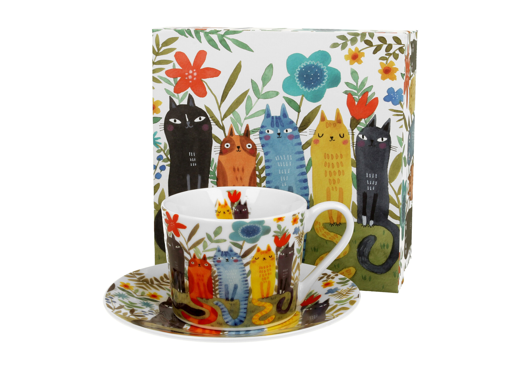 Filiżanka ze spodkiem elegant Koci Świat KOTY OGRODOWE