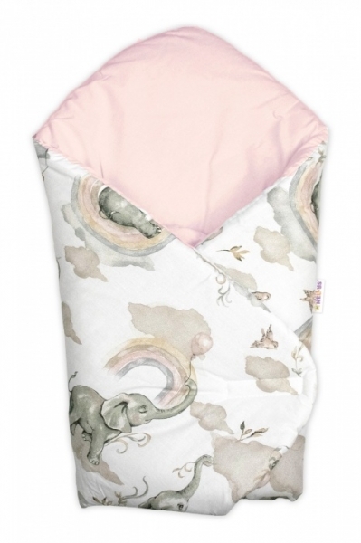 Novorozenecká bavlněná zavinovačka, Slon a Duha, bílá/růžová