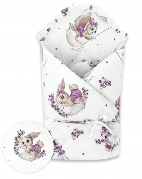 Bavlněná novorozenecká zavinovačka s volánkem, Veverka LILI - fialová