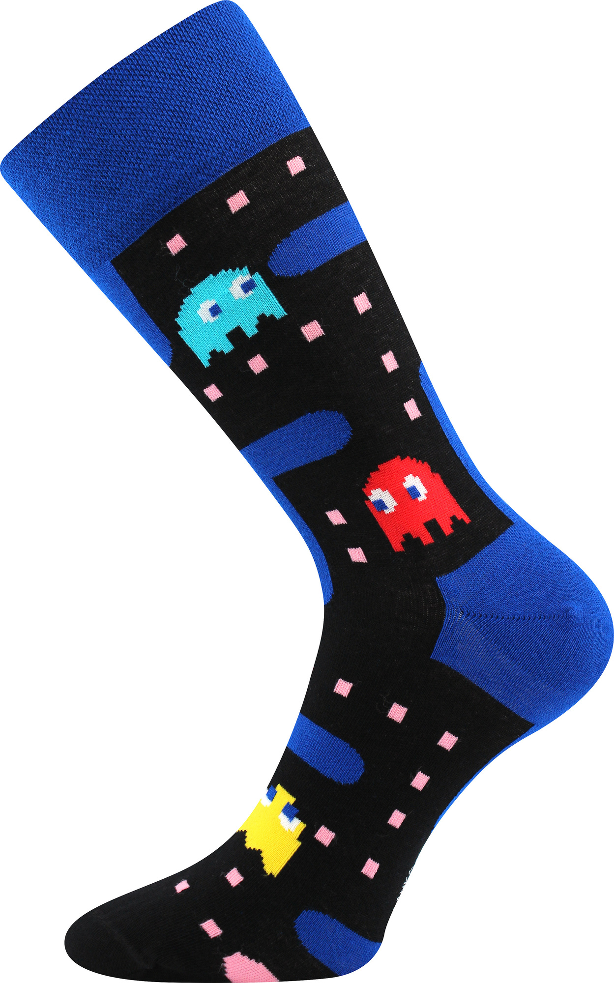 Obrázkové společenské ponožky Lonka® TWIDOR jsou módní klasické ponožky špičkové kvality. Úplet je pletený na 200 jehlových strojích, je velmi jemný a hladký, takže každý detail obrázku je ostrý. Ponožky mají špičku spojenou plochým řetízkovým švem, který vůbec necítíte a nehrozí, že ponožka bude tlačit. Ponožky mají navíc volný nestahující pique lem. Vysoce kvalitní česaná bavlněná příze s podílem elastanu dobře odvádí vlhkost, je příjemná na pokožce perfektně sedí na noze. Crazy oblekové ponožky oživí váš outfit, ať už nosíte oblek nebo džíny.