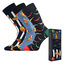 Dárkové balení ponožek Lonka® DEBOX je perfektní dárek pro dámy i pány. Klasické ponožky jsou díky vysokému podílu česané bavlny příjemné na omak a dobře se nosí. Špička ponožky je uzavřena náročnějším řetízkováním, díky kterému je spoj dokonale hladký a nehrozí, že ponožka bude tlačit. Slabé ponožky jsou balené v dárkové krabičce po 3 párech, které se k sobě hodí a ladí. Vtipné ponožky jsou ideální dárek!