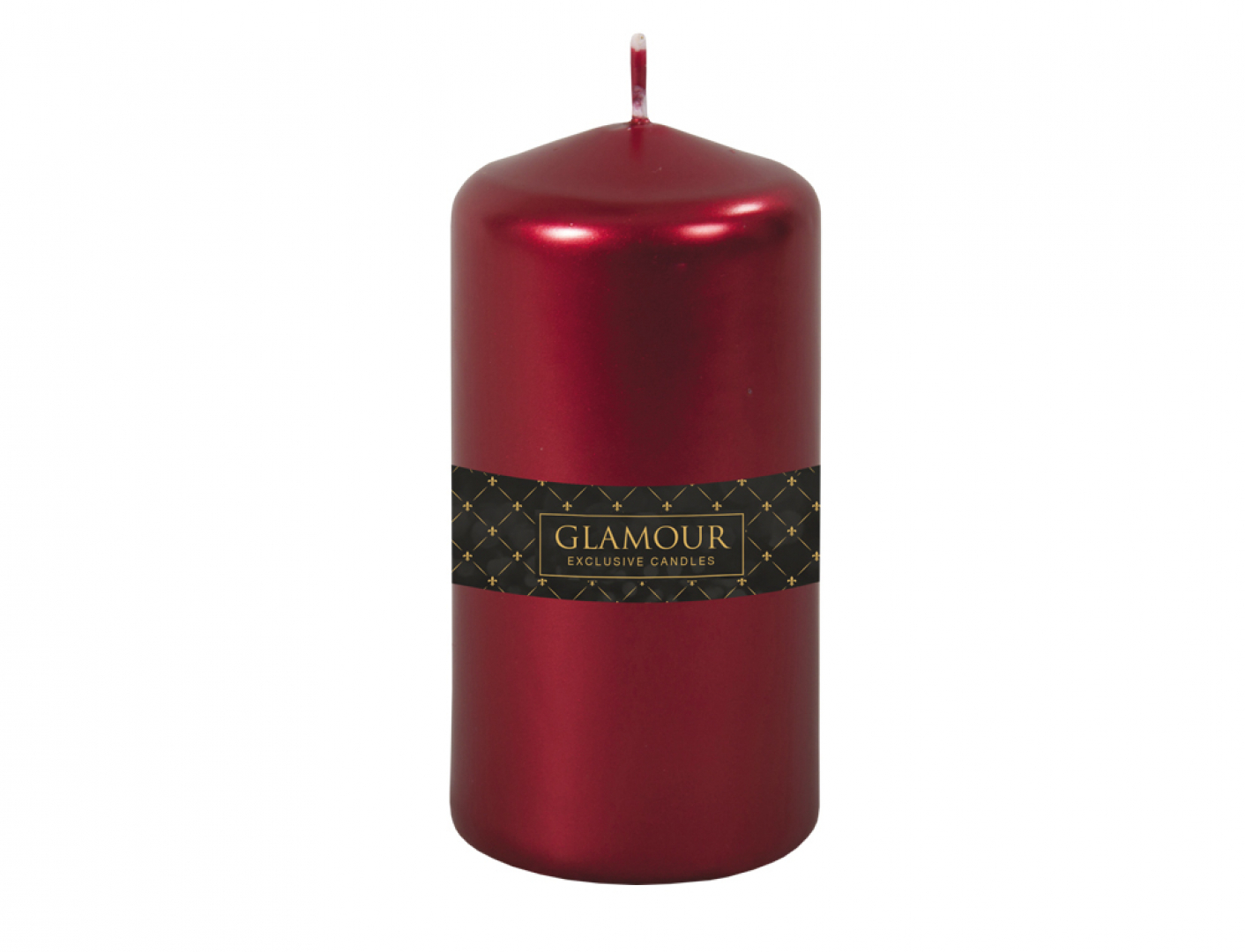 Svíčka ve tvaru válce s hladkým povrchem, v provedení metalický lesk. Ve vánočních dekoracích a upoutá pozornost. Doba hoření: 38 hodin. Rozměry: průměr 6 cm, výška 12 cm. Barva: červená.