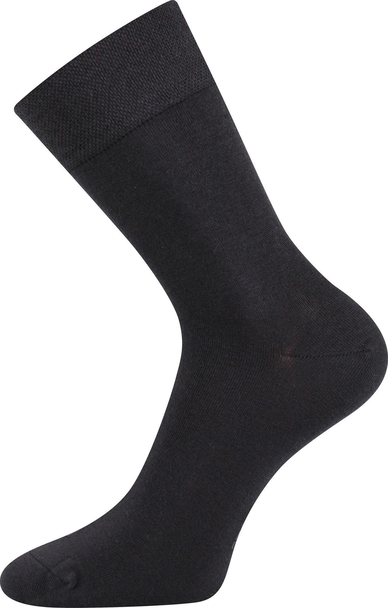Klasické hladké ponožky ELI jsou luxusní ponožky z kolekce Lonka®. Přírodní materiál bavlna vyniká vysokou savostí vlhkosti a je velmi příjemná na omak. Ponožky jsou upletené na 200 jehlách, jsou proto velmi příjemné, ponožky mají jemně sešitou špici, spoj je tedy hladký a nehrozí Vám otlaky nebo puchýře. Lem ponožky má velmi jemný, nikde nestahuje a nezařezává se do pokožky. Klasické ponožky v extra kvalitě můžete bez obav nosit k pánskému obleku nebo při každé celodenní činnosti.