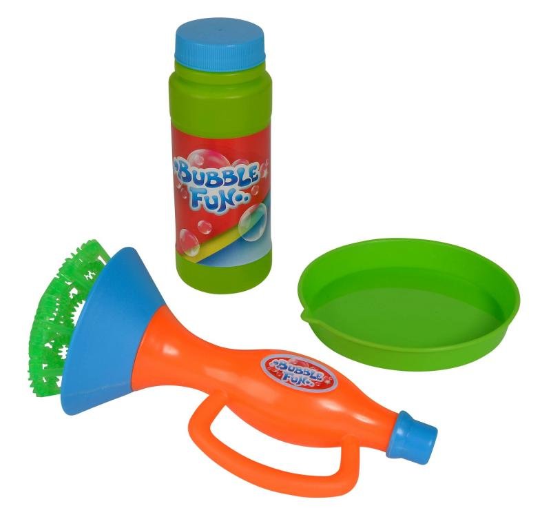Bublifuk ve tvaru trumpety pro tvoření mnoha bublik najednou, 160 ml roztoku, miska na roztok. Délka 15 cm. číst celé