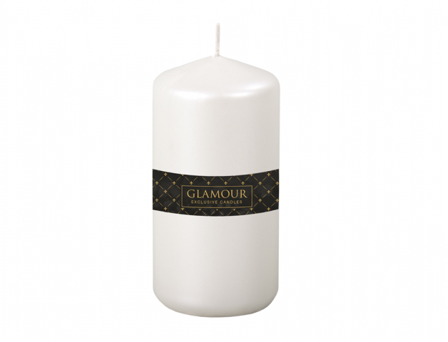 Lesklá perleťově bílá svíčka ve tvaru válce. Velikost: d6 x 13 cm. číst celé