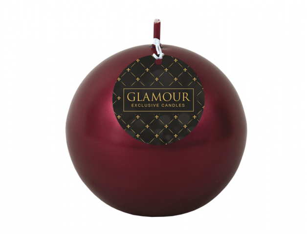 Lesklá bordó svíčka ve tvaru koule. Velikost: d8 cm. číst celé