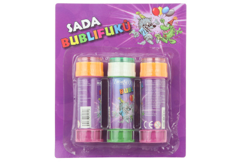 Sada 3 bublifuků. Rozměry jednoho bublifuku cca 4 x 11 cm. Rozměry balení cca 17,5 x 21 x 3,5 cm. Věk 3+ číst celé