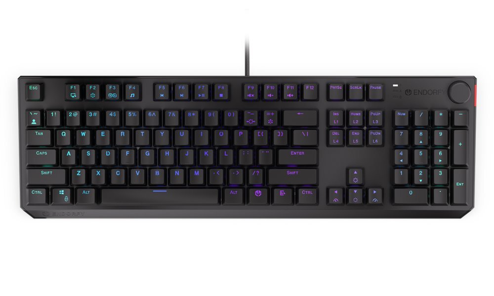 Endorfy herní klávesnice Thock Blue / USB / blue sw. / drátová / mech. / US / / PBT double-shot keycaps / černá RGB