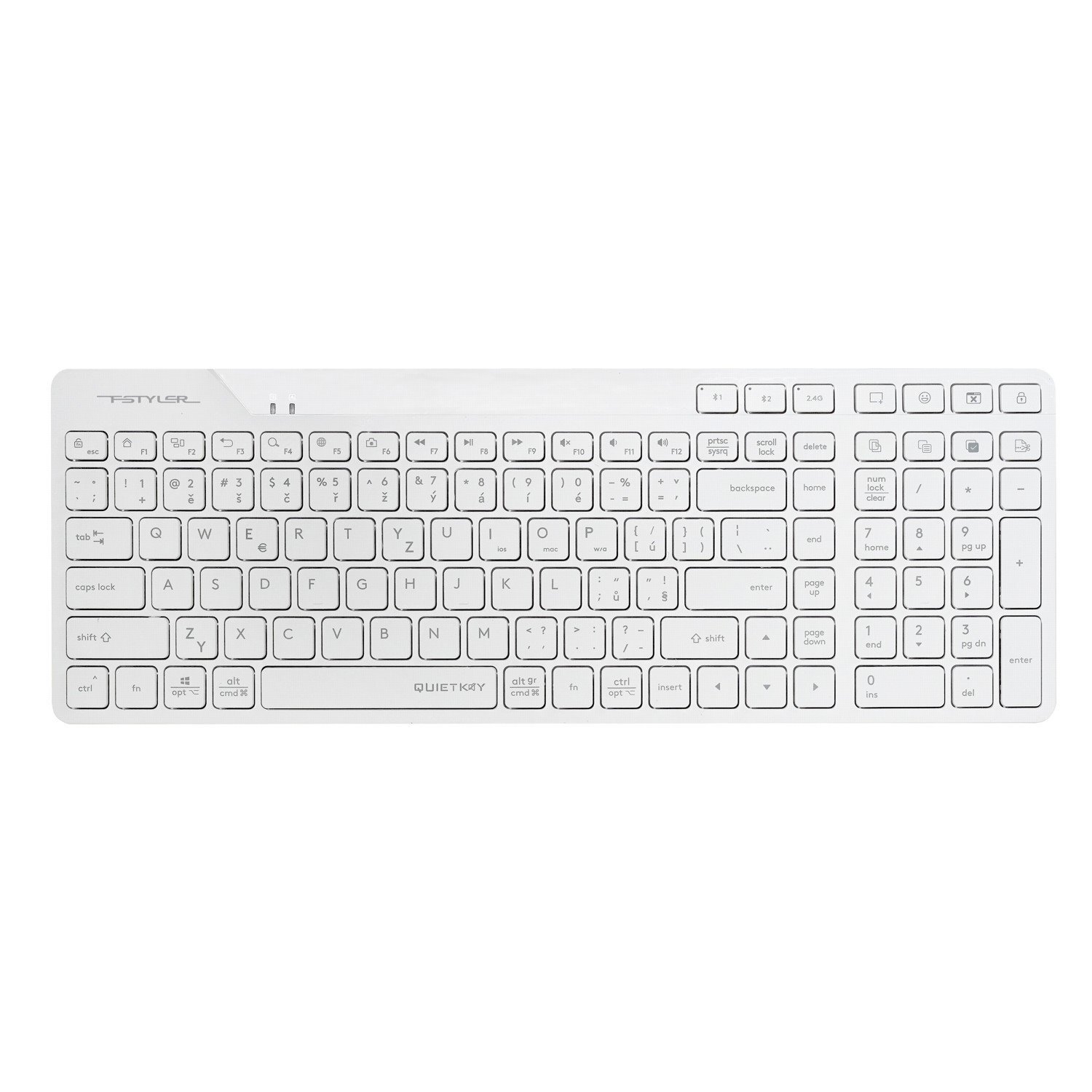 A4tech FStyler FBK27C AS, bezdrátová Dual mode Bluetooth+2,4G klávesnice, CZ, bílá