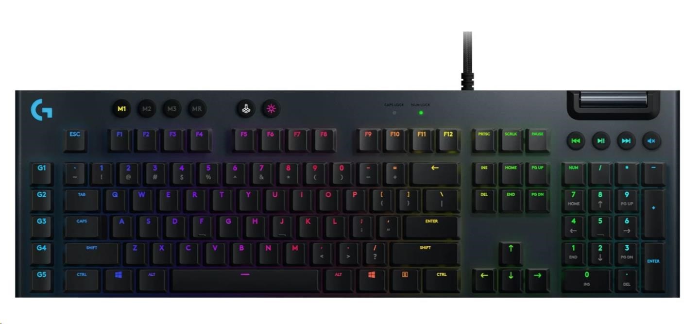 Elegantní a sofistikovaná klávesnice G815 přináší cíleně vysokou výkonnost a efektivitu se všemi funkcemi potřebnými pro dokonalé ovládání - například programovatelné klávesy G-key a integrované profily. Přeměňte klávesnici G815 na řídicí centrum svého PC.