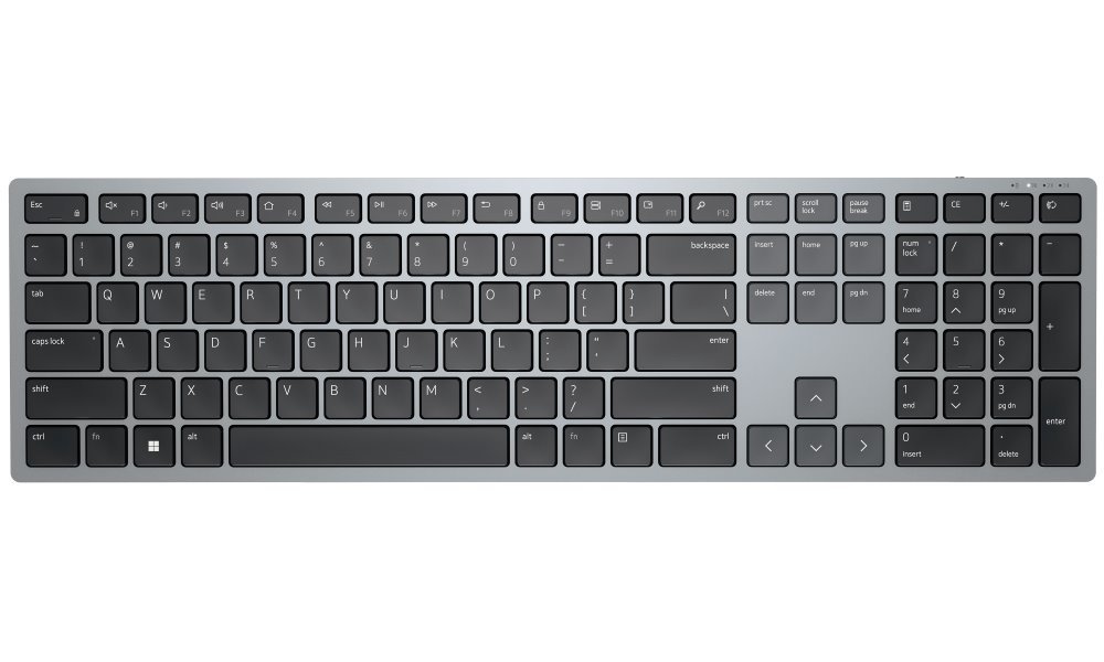 Stylová plnohodnotná bezdrátová klávesnice Dell podporuje připojení až ke třem zařízením v jeden moment. Napájení zajišťují dvě AAA baterie, které zaručí výdrž až 36 měsíců. Připojení je realizováno bezdrátově skrze Bluetooth či miniaturní USB přijímač a technologii 2,4 GHz.