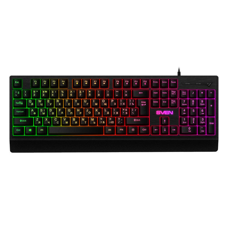 Ať už jste vášnivými hráči nebo se věnujete profesionálním povinnostem, drátová klávesnice SVEN KB-C7150EL zvýší vaše pohodlí při práci s počítačem. Je vybavena 104 membránovými klávesami, včetně 12 funkčních kláves pro efektivní ovládání. Jejich životnost dosahuje více než 20 milionů kliknutí. Funkce vícebarevného RGB podsvícení s nastavitelným jasem vytvoří jedinečnou atmosféru. Kabel USB o délce 1,5 metru navíc zaručuje pohodlné připojení a díky němu bude zařízení na stole také dokonale vypadat.