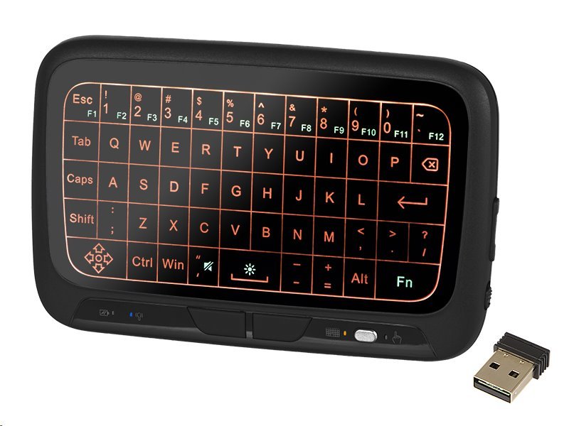 Klávesnice nabízí dva provozní režimy: klávesnici a myš. Dotykový režim umožňuje klikat a pohybovat myší. V režimu klávesnice může uživatel volně zadávat znaky a symboly, jako když používá standardní klávesnici.