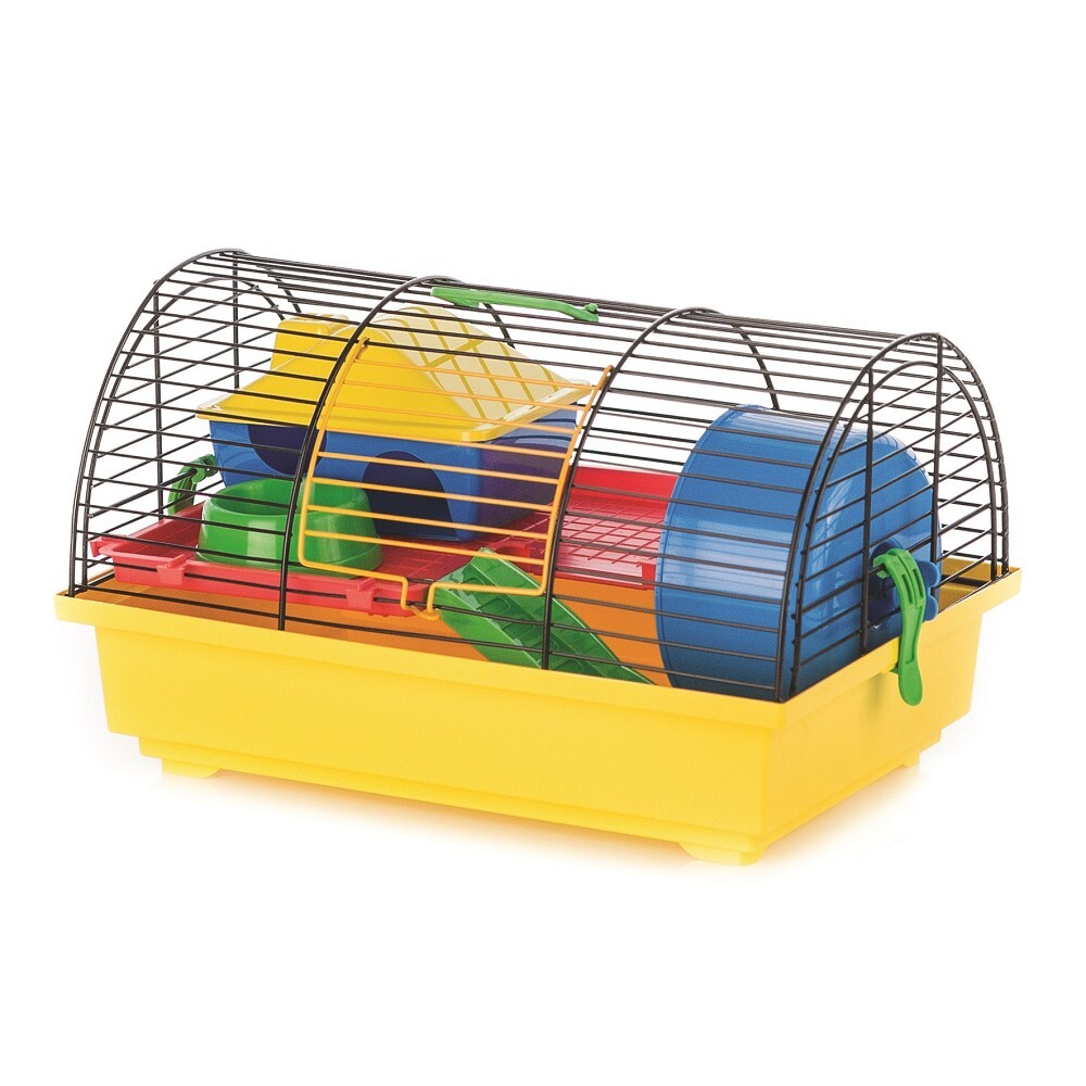 Klec Grim s plastovým vybavením je vhodná zejména pro malé hlodavce.„Abyste předešli poškození klece okousáním, pro potkany, pískomily a osmáky, jejichž přirozeným naturelem je průzkumnictví a hledání únikových cest, doporučujeme klece s drátěnými prvky - ideálně klec Osmák, Osmák degu, které jsou navíc vybavena drátěným roštem bránícím rozkousání plastových dílů klece."Vybavení obsahuje: 1 x kolotoč, 1 x domeček, 1 x patro, 1 x miska, 1 x žebřík.Rozměry: 37 x 25 x 21 cmRozteč drátů: 1,4 cmBarva: různé barvyUpozornění: Vážení zákazníci, pokud máte zájem o konkrétní barvu tohoto výrobku, uveďte ji, prosím, do poznámky při vyplňování objednávky. V případě, že klec ve Vámi požadované barvě máme skladem, rádi Vám vyhovíme a zašleme ji. Pokud ne, budeme Vás kontaktovat s aktuální nabídkou barev.Aktuální barevnou nabídku Vám také sdělíme pomocí odkazu "dotaz na prodavače".