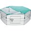 Tento výběh se skládá ze 6 pevných kovových prvků o rozměrech 58 × 38 cm, které spolu tvoří celkový prostor o průměru 116 cm a výšce 38 cm. Díky malým roztečím mřížky zabráníte úniku i nejmenších zvířat. Praktická ochranná síť s oky o velikosti 1 × 1 cm zajistí, že se do výběhu nedostanou nepřátelé a zároveň dovolí přístup světla a vzduchu. Polovina z této sítě je navíc neprůhledná, což poskytuje potřebný stín a ochranu před přímým slunečním zářením. Výběh je vybaven praktickými dvířky pro snadný přístup a lze jej rozšířit přídavnými díly, což oceníte při růstu vašich mazlíčků nebo při větším počtu zvířat.