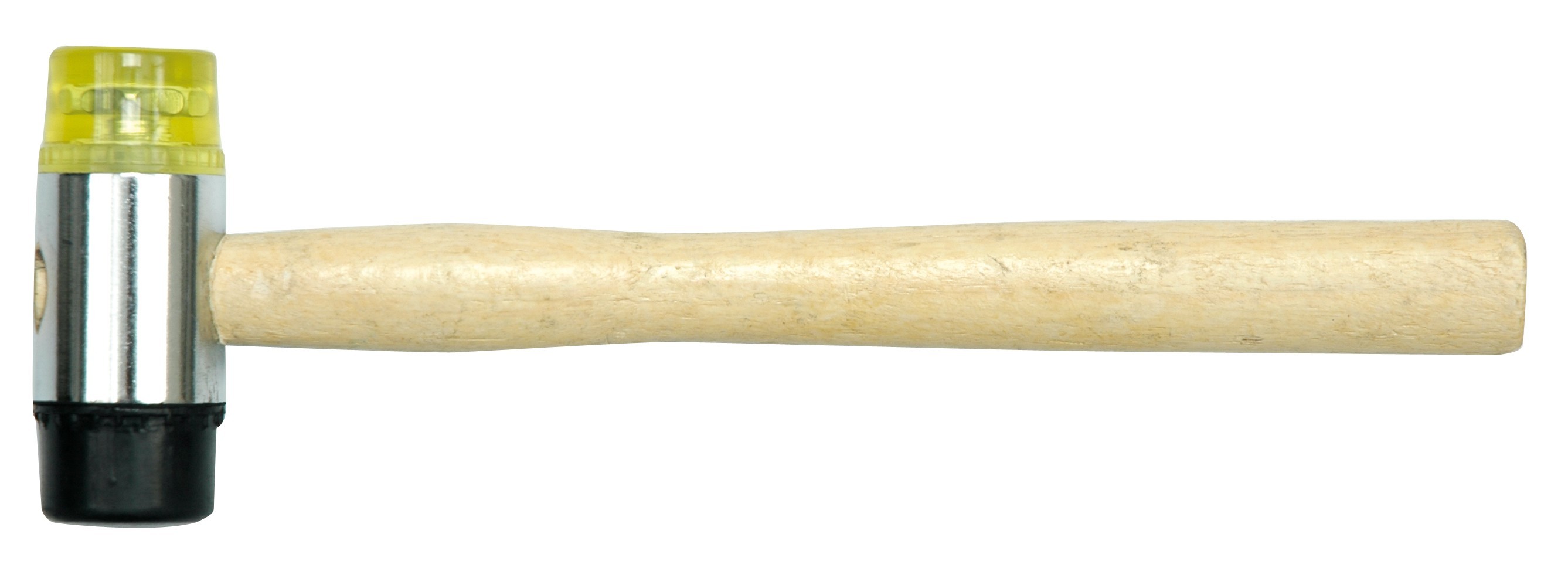 Na jedné straně gumová a na druhé kovová. Nasazené na dřevěnou, lakovanou rukojeť.