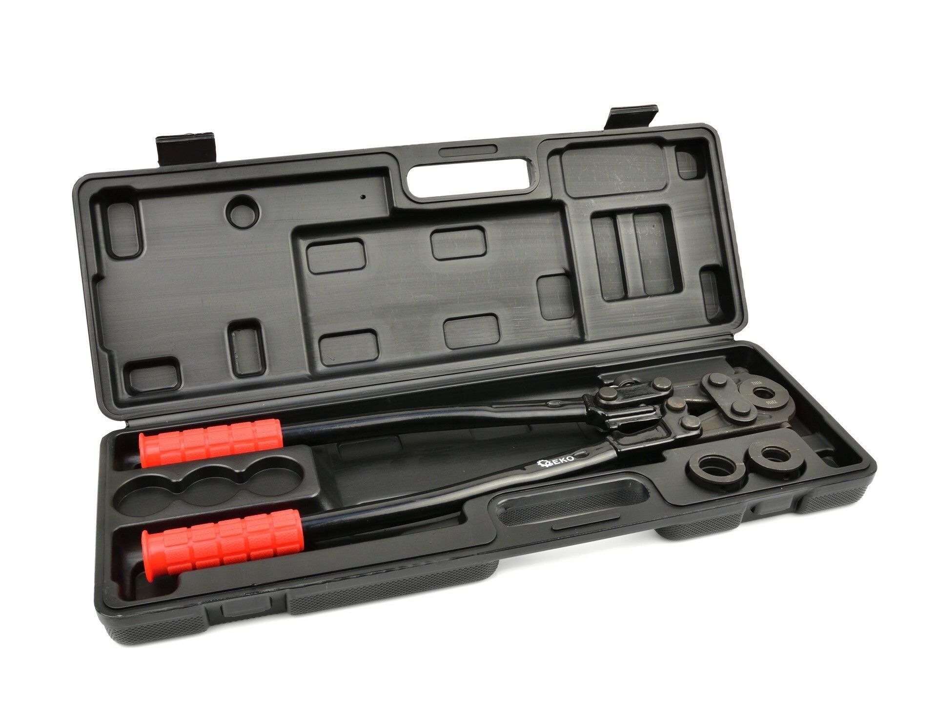 Krimpovací nástroj pro lisování spojek PEX-AL-PEX a PERT-AL-PERT. Krimpovací nástroj je určen pro lisování spojek trubek ve vícevrstvých instalačních systémech. Vyměnitelné čelisti vám umožňují pracovat v celém rozsahu průměrů trubek od 16 mm do 26 mm.