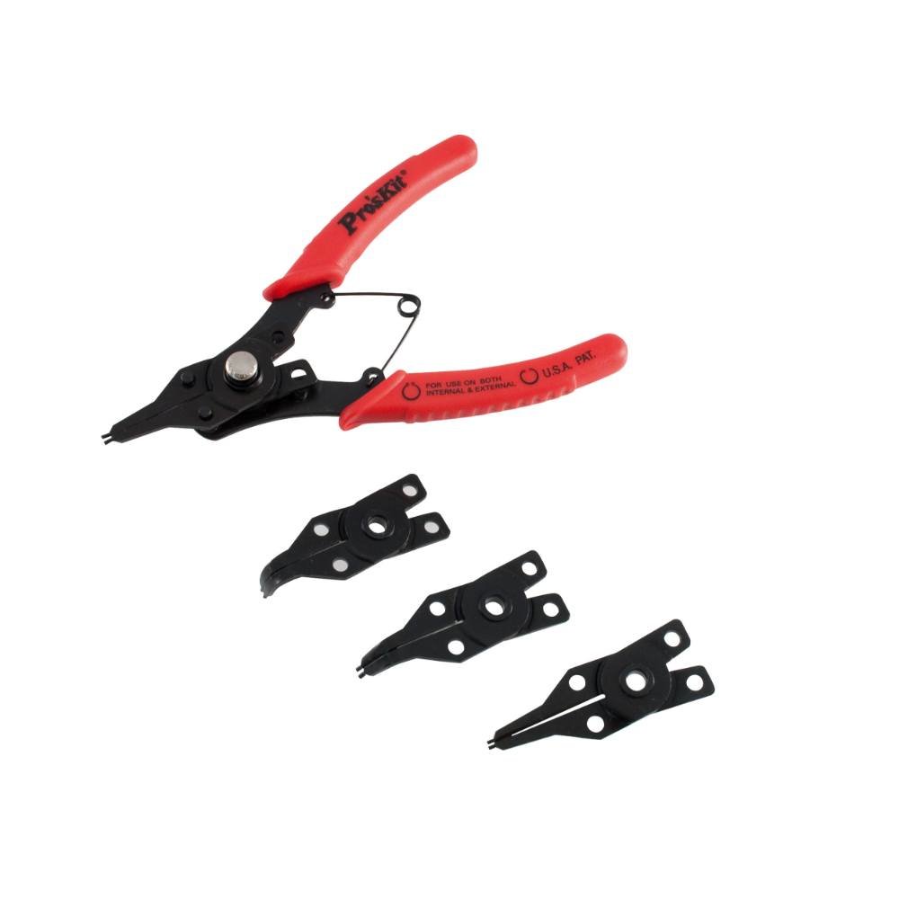 Kleště pro pojistkové kroužky (segrovky)VlastnostiKombinace interně-externího efektivního rozsahu 10-50 mm. Sada obsahuje tři kusy čelistí - 180°,90° a 45°. Díky výměnitelným čelistem můžete kleště použít k až šesti různým účelům. číst celé