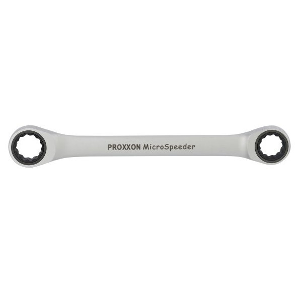 Profesjonalny klucz dwuoczkowy PROXXON MicroSpeeder w wydłużonej, wąskiej wersji jest idealny do prac wszędzie tam, gdzie mamy do czynienia z ograniczoną przestrzenią. Często ma zastosowanie przy demontażu silników, naprawie automatycznych skrzyń biegów, zawieszeń itp. 72-zębowy wewnętrzny pierścień wykonany z wysokostopowej stali już przy poruszeniu o 5°. Przełącznik obrotów prawo - lewo. Korpus ze stopu stali CrV. Optymalna ochrona antykorozyjna: dwukrotne niklowanie a następnie chromowanie z matowym wykończeniem. Oznaczenia są bardzo czytelne dzięki laserowej technologii druku. 2 lata gwarancji również przy zastosowaniu przemyłowym!