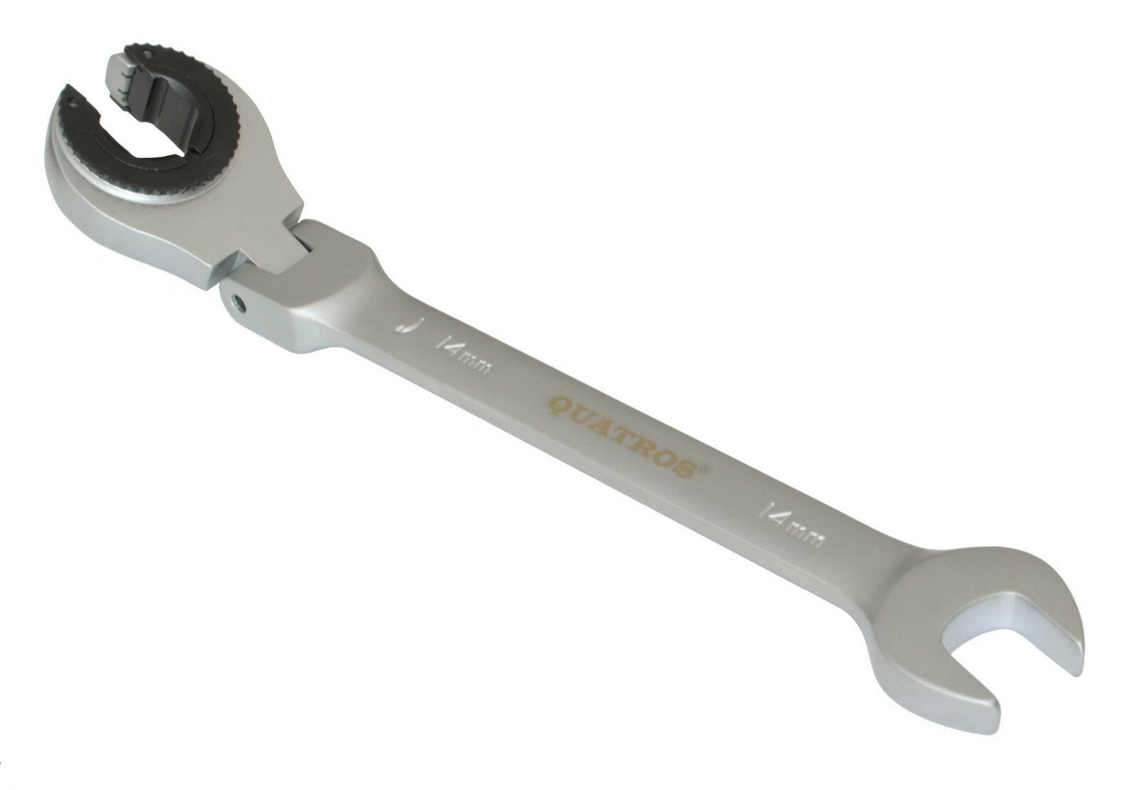 Očkoplochý kloubový klíč s ráčnou na převlečné matice, velikost 14 mm QUATROS