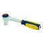 Hlava a tělo rotační ráčny je vykováno z jednoho kusu CrV oceli. Povrch je chráněn dvojitou vrstvou chromu. Díky otáčecí rukojeti lze rotační ráčnu použít všude tam, kde máte k manipulaci pouze velmi malý prostor; stačí pár milimetrů prostoru na povolení či utažení. Rukojeť je z neoprénu, odolného oleji a kyselinám a má praktický otvor, umožňující zavěšení. Dokonalé optimálně tvrzené zuby dávají předpoklad maximální životnosti. Spolehlivý ráčnový mechanismus s několika současně zabírajícími zuby (z celkového počtu 52 zubů) zajišťuje optimální přenos utahovacího momentu. Reverzní přepínač integrovaný do ráčnového mechanismu. Tlačítko pro rychlé uvolnění hlavice. Laserově označení ráčny.