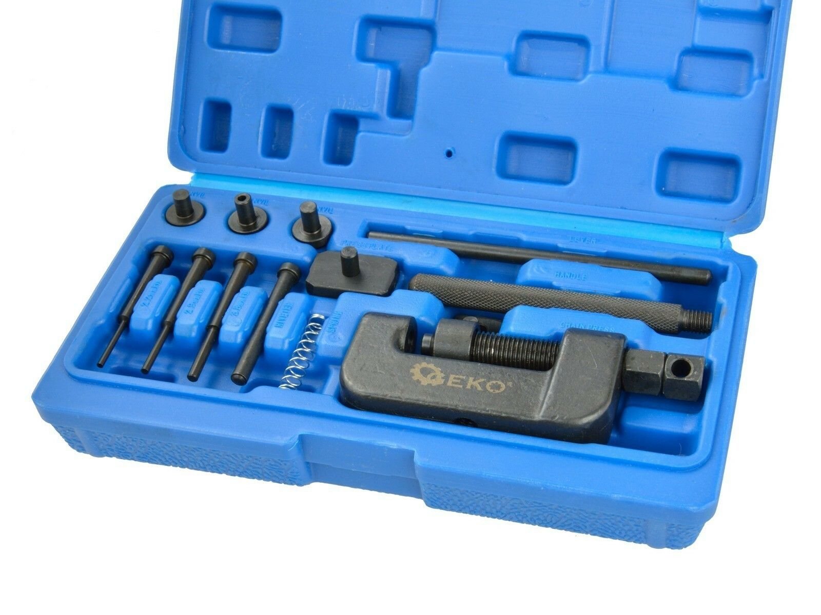 Sada nářadí pro nýtování a roznýtování článků řetězů rozvodů různých značek jako např.