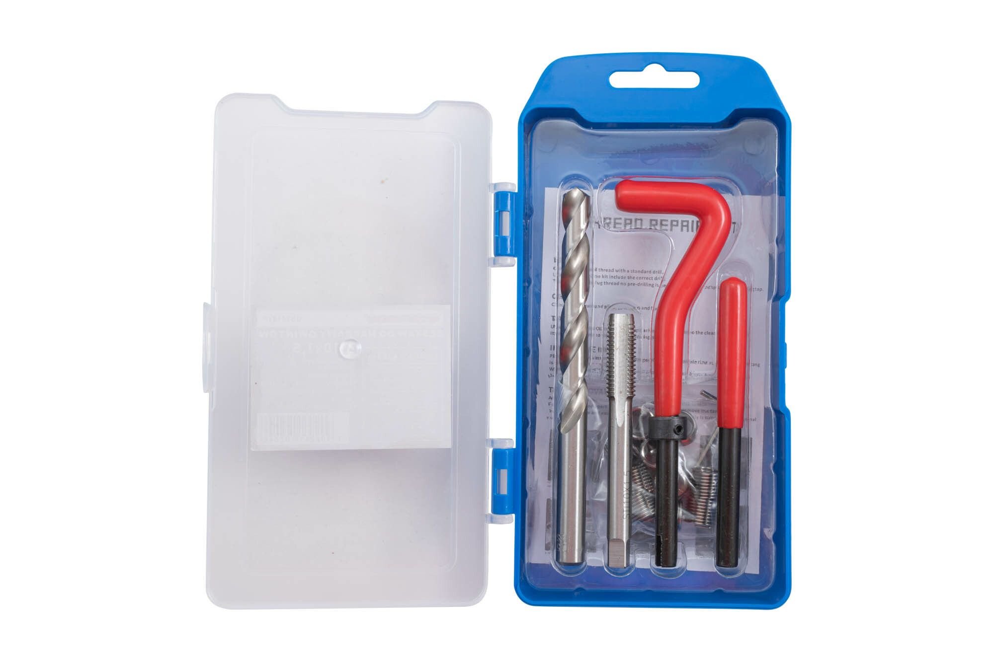 Sada na opravu poškozených, stržených závitů M10x1.5 V sadě 10ks závitových vložek Vrtáky i závitníky jsou vyrobeny z kvalitní oceli HSS 4341.Jednostupňový závitník vyřeže závit do kterého se zašroubuje spirálová závitová vložka z nerez oceli.K zašroubování vložky slouží speciální šroubovák, k odstranění výstupku ve vložce se slouží vyrážeč. Obsah balení: Vrták: 10,5 HSS Pružinové vložky 10ks Závitník HSS pro závitovou vložku M10x1,5 Vyražeč, pro vyklepnutí vložky Speciální šroubovák s odjímatelnlým dorazem Imbus HSS - Rychlořezná ocel