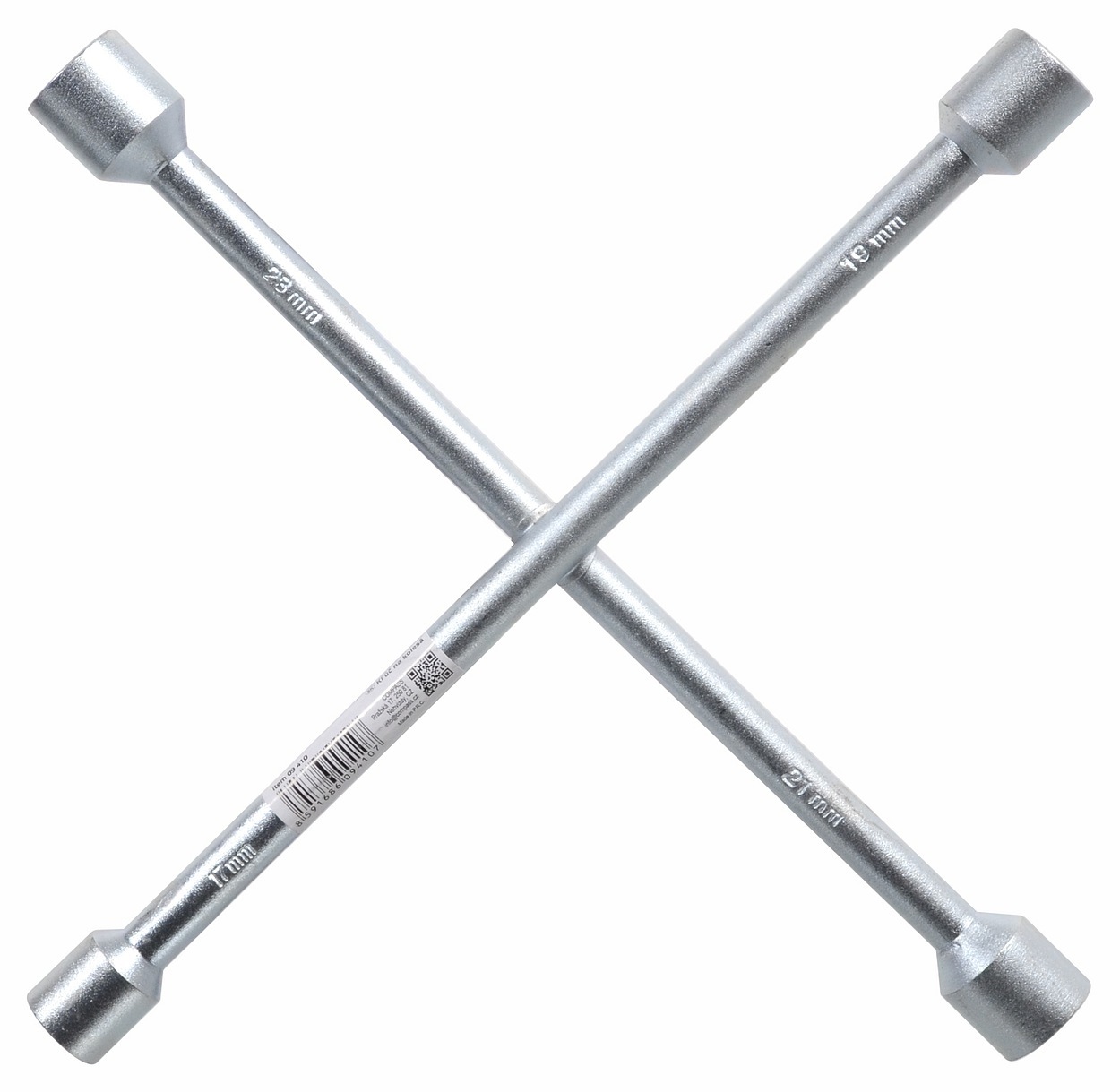 Celokovový klíč ve tvaru kříže, který je určen pro povolování či utahování matic kol automobilů.