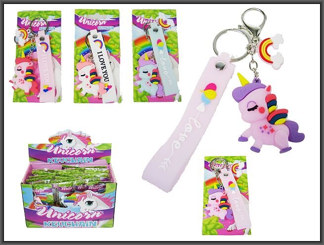 Breloczek jednorożec 6cm z zawieszką 11cm . Pakowany pojedyńczo na blisterku 14x7cm . display 24x13x23cm pakowanie 24/192