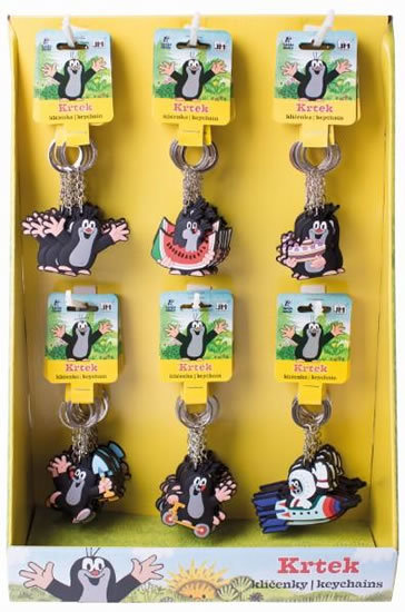 Stojany obsahují klíčenky z měkčeného PVC. Každý stojan má 6 pozic a do každé pozice je umístěno 12 klíčenek. Náplň stojanu je předem definovaná - nelze měnit počet klíčenek, druh nebo jejich motiv. číst celé