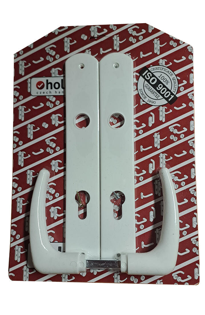 Dveřní klika s dlouhým štítkem s roztečí 90 mm pro cylindrický (PZ) zámek.