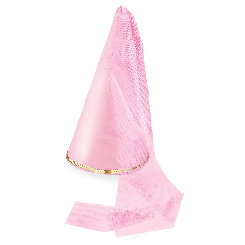 Klobouček víly, se závojíčkem a zlatou obšívkou. Dětská velikost. Obvod hlavy: 50 cm Barva: růžová Materiál: 100% Polyester