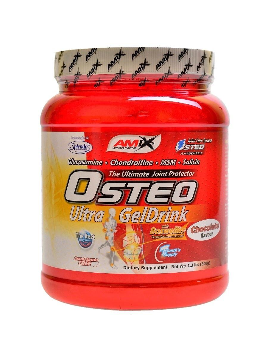 Osteo Ultra GelDrink 600g Potravina určená pro zvláštní výživu. Vhodné pro sportovce a osoby při zvýšeném tělesném výkonu. Se sladidlem. Osteo Ultra GelDrink je vysoce účinný rozpustný práškový nápoj pro ochranu, regeneraci a výživu kloubů, chrupavek, kostí, šlach a vazů. Základní a nejdůležitější složkou je kvalitní hydrolyzát kolagenu doplněný o prověřenou, vysoce účinnou kombinaci Glukosaminu, Chondroitinu, MSM, Salicinu a Boswellie. Účinky produktu ještě podporuje vyvážený komplex důležitých vitamínů a minerálů. Glukosamin je základním stavebním kamenem kostí, chrupavek, vazů a šlach. Chondroitin je derivát glukosaminu, který podporuje pevnost a pružnost všech pojivových tkání v těle. Extrakt z pryskyřice indického stromu Boswellia Serrata obsahuje boswellové kyseliny, které podporují zdravý tok krve do kloubů a působí blahodárně při chronických zánětech pohybového ústrojí. White Willow Bark (Salicin) a MSM výrazně napomáhají snižovat bolest, redukovat záněty a otoky kloubů. Salicin je přirozenou formou Aspirinu. • dokonalá kloubní výživa • podporuje zlepšení pohyblivosti kloubů • vyživuje kloubní chrupavku • podporuje zdravý vývoj kůže, vlasů a nehtů • napomáhá intenzívní regeneraci a ochraně kloubů a vaziv