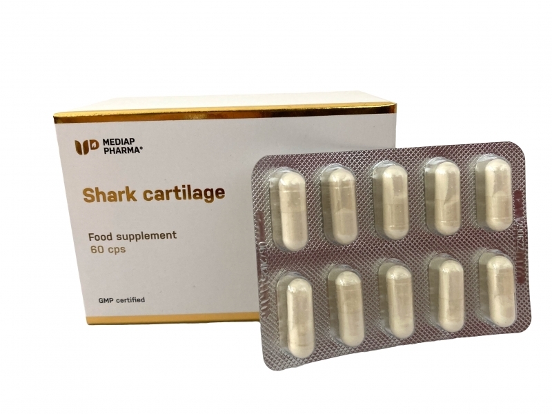 Shark cartilage - chrupavka z paryb je zdrojem vápníku, fosforu, glukosamin sulfátu, chondroitin sulfátu a glykosaminoglykanů v organické formě. Popis: