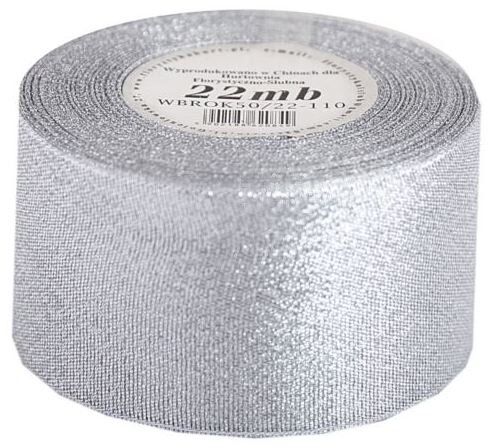 Wstążka brokatowa 50mm/22mb, srebrna, Florystyka