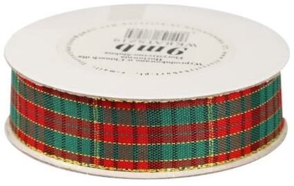 Wstążka w szkocką kratkę, 19mm/9mb, złocona, Florystyka