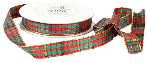 Wstążka w szkocką kratkę, 12mm/9mb, złocona, Florystyka