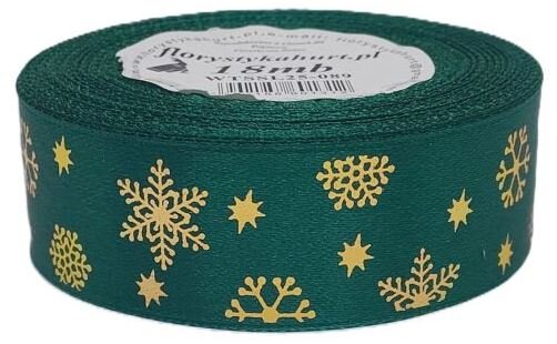 Wstążka metal Śnieżynki, 25mm/18mb, butelka/złoto, Florystyka