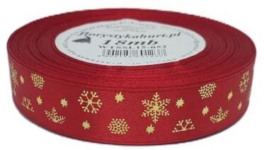 Wstążka metal Śnieżynki, 15mm/18mb, c.czerwo/złoto, Florystyka