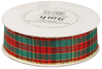 Wstążka w szkocką kratkę, 25mm/9mb, złocona, Florystyka