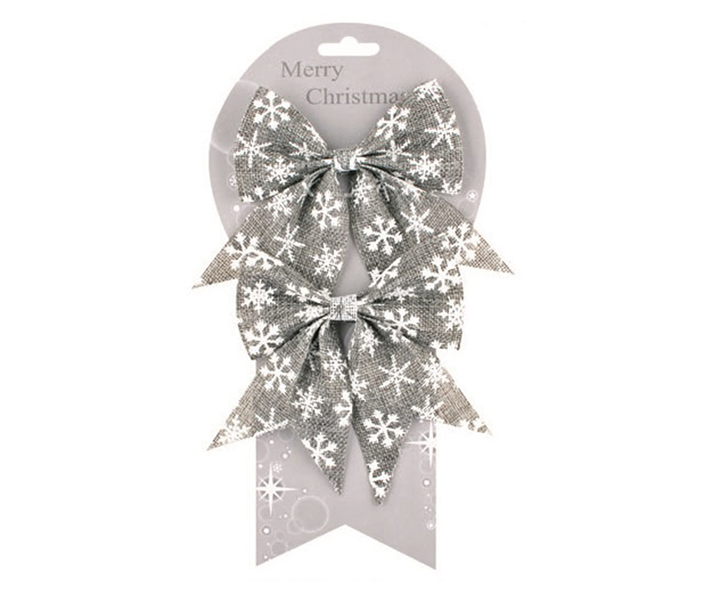 Mašle jutová šedá s bílými vločkami 13 cm, 2ks